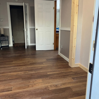 This project was a little remodel, we turned 2 rooms into one using a beem resesed in the ceiling, sheet rocked the new room added some new lights, leveled the floors in the different rooms to be the same level and put in a new door, window and beautiful new floors.